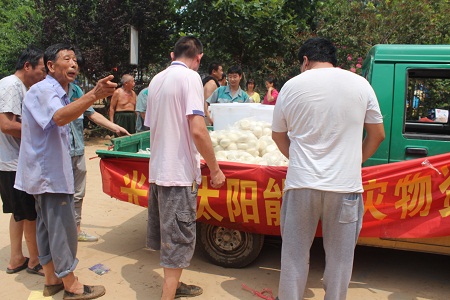 根據(jù)開發(fā)區(qū)管委會統(tǒng)一安排,轄區(qū)內(nèi)企業(yè)對受災(zāi)村民在生活上進(jìn)行對口支援。光源太陽能公司與其他幾家企業(yè)支援景家屯村。其中光源公司為景家屯300名村民提供一日三餐,解決300口人的生活問題。