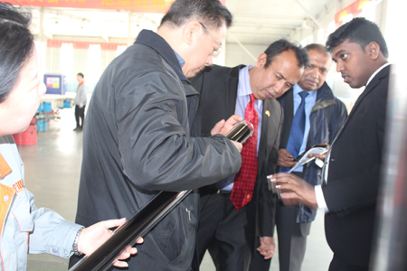 在光源公司總經(jīng)理劉迎波陪同下,斯里蘭卡客商先后參觀了太陽能采暖系統(tǒng)、燃氣壁掛爐車間、真空管車間和太陽能熱水器車間,觀看了光源太陽能公司視頻宣傳片,雙方進行了友好洽談,溝通了項目基本情況,促進了雙方了解,約定了互訪和進一步洽談等。