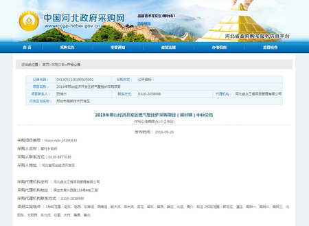 中標(biāo)2019年邢臺經(jīng)濟(jì)開發(fā)區(qū)燃?xì)獗趻鞝t采購項(xiàng)目(留村鎮(zhèn))!