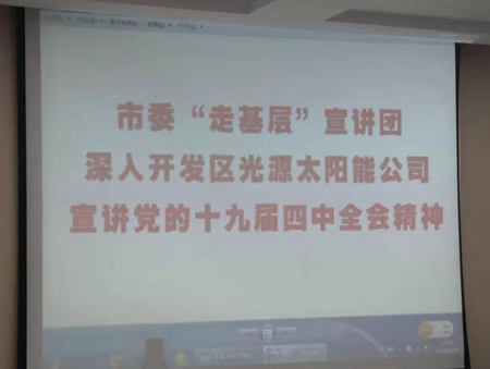 12月3日市委“走基層”宣講團一行6人到開發區光源太陽能科技有限公司,宣講黨的十九屆四中全會精神。