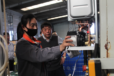接著,焦世清主任來(lái)到公司壁掛爐生產(chǎn)車間,實(shí)地考察了國(guó)家支持技改項(xiàng)目---煤改氣壁掛爐生產(chǎn)線。焦主任囑托公司,要繼續(xù)做好產(chǎn)品,保證科學(xué)技術(shù)在世界的領(lǐng)先地位。
