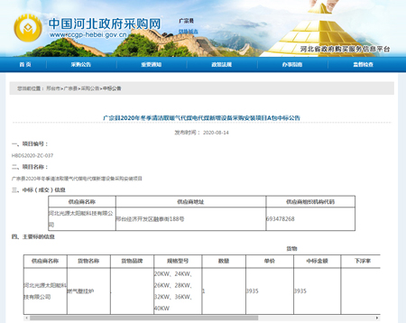 廣宗縣2020年冬季清潔取暖氣代煤電代煤新增設(shè)備采購安裝項(xiàng)目