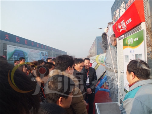 12月7日上午,光源公司邀請經銷商朋友到廠區參觀并合影留念。光源公司在廠區的特定位置展示了光源的產品,尤其是新品的展示更安排了技術人員現場演示與講解,廣大經銷商朋友對光源新品產生了濃厚的興趣,紛紛駐足光看,聆聽講解。7日下午,光源太陽能年會舉行訂貨會,活動現場氣氛熱烈,經銷商朋友爭先恐后的簽訂購貨協議,訂貨量與去年持平。
