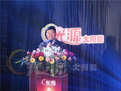 首先,12月6日上午9:30,光源年會隆重開幕。在年會上,中國太陽能熱利用產業聯盟副理事長、中國太陽能熱利用產業協會副理事長、河北光源太陽能科技有限公司董事長李成彬致辭。他代表光源公司對各位領導、專家、經銷商朋友的到來表示熱烈歡迎和衷心感謝,對光源2014年取得的成績和2015年發展方向進行了總結和展望。李成彬指出,2014年是光源發展史上不平凡的一年,在國內經濟增速放緩的大背景下,太陽能光熱行業也受到極大影響。但光源勇敢拼搏、堅定信念,以市場為導向,以銷售為龍頭,產量雖然相比去年有所下滑,然而,我們依然對太陽能光熱行業的發展前景充滿信心,相信太陽能光熱的春天一定還會到來。行業領導羅振濤、霍志臣、張曉黎、賈鐵鷹、楊桂元先后講話。在講話中,領導們肯定了光源跨越發展、科技創新取得的喜人成績,肯定了光源在全國同行業中的地位和作用,對光源未來發展提出了指導性意見。光源公司總經理劉迎波在講話中詳細分析了光源公司面對的市場形勢,他說,光源公司在今后的發展道路上要審時度勢,及時調整經營戰略和營銷政策,做精做細終端市場,和廣大經銷商一起,打造符合光源特點的企業發展之路。